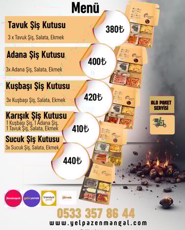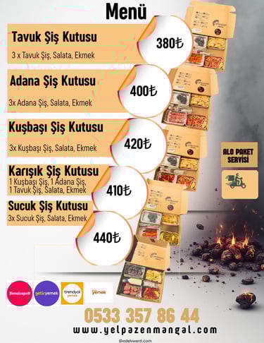 1 Kuşbaşı Şiş, 1 Adana Şiş, 1 Tavuk Şiş, Salata, Ekmek
